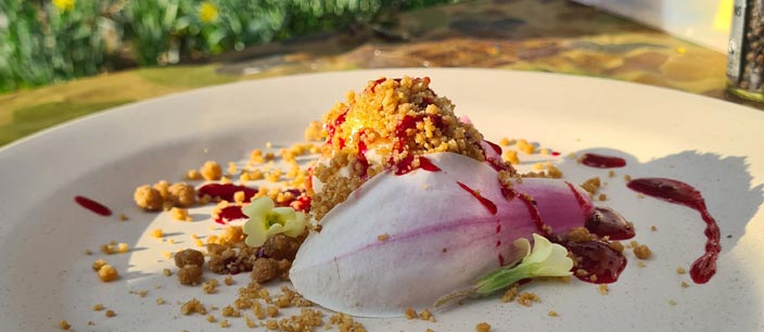 This deconstructed take of a damson cheescake is a great base for various foraged items from spring to autumn.